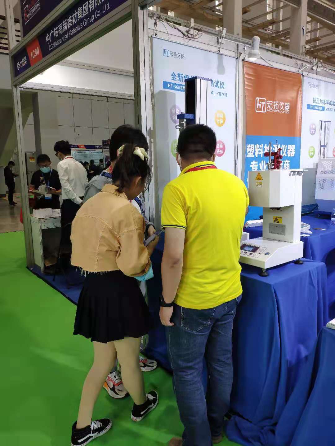 現(xiàn)場技術(shù)人員給觀眾展示了我們的塑料檢測儀器,密度計,拉力試驗機,維卡熱變形,沖擊試驗機,深受客戶好評!希望明年的